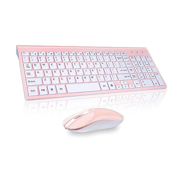 【Slim and Ergonomic Design】 The slim keyboard has a tilt angle for the great typing position.Sweat-resistant, skin-friendly finish wireless mouse in contoured shape would provide hours of work comfortably. The full size keyboard type fast with numeric keypad and instant access your music,internet,e-mail,volume,etc by multi-media hot keys.(The hot-keys not fully compatible with Mac System)